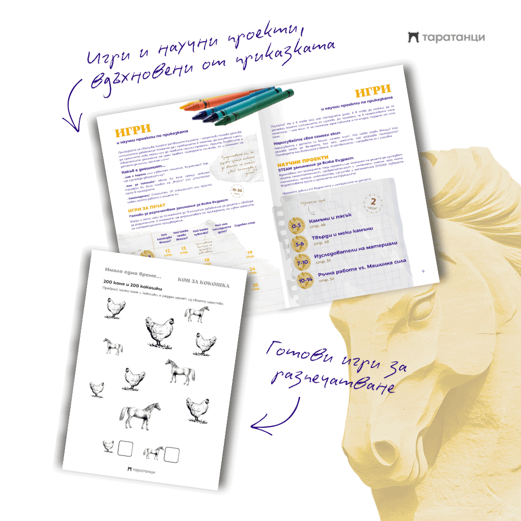 Активна книжка? Дигитална книжка под формата на онлайн списание, пълна с игри, театър и малки творчески научни проекти, вдъхновени от народна приказка „Кон за кокошка”.